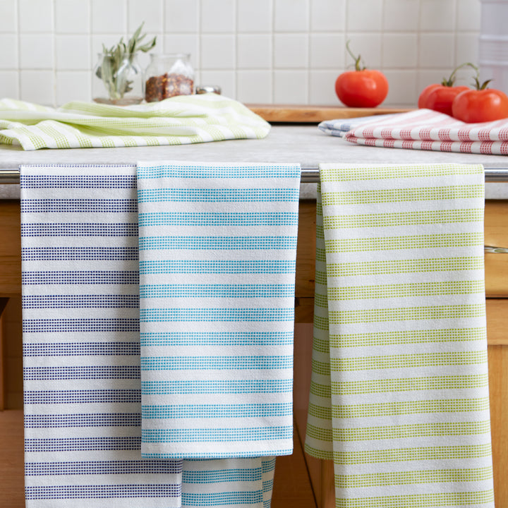 Our premium Indian cotton dish towels are loomed into a dense dobby weave that produces an absorbent, long-lasting, and durable kitchen towel. These towels will continue to get even softer and more absorbent with each wash.