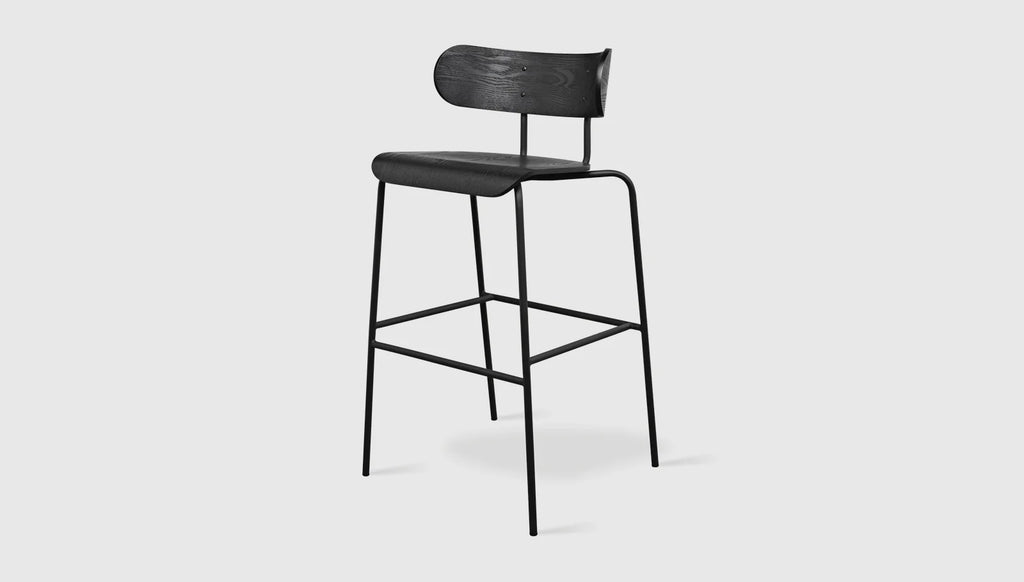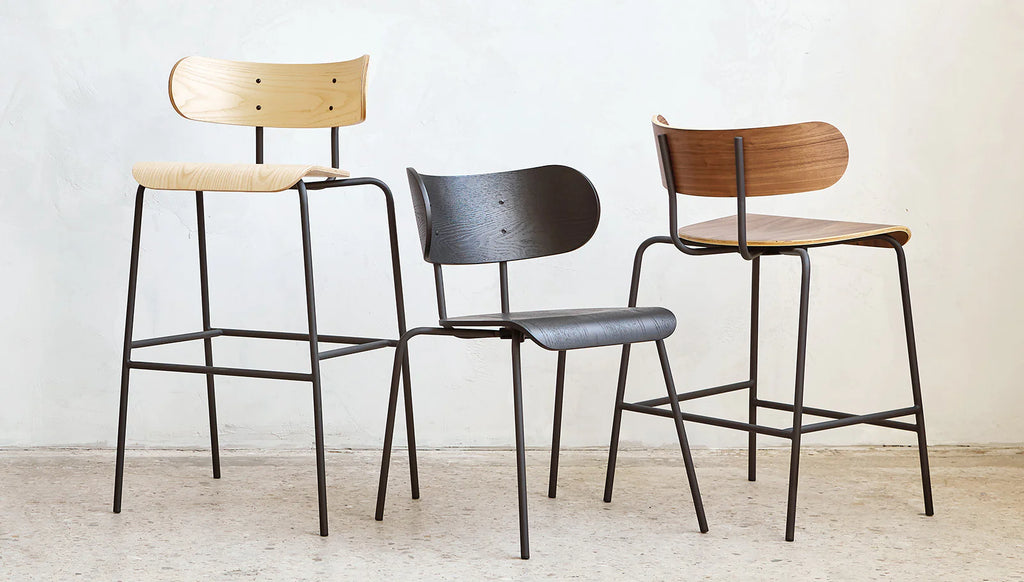 Blending a mid-century design approach with the ease of contemporary living, the Bantam Bar Stool embodies simple sophistication with a sculptural ethos that welcomes you to sit and stay awhile. Delicate steel legs support a formed-plywood seat and back that ergonomically support the body with gentle curves for all-day comfort. Sturdy, yet lightweight, this original design includes an integrated footrest for extra support. All you have to do is sit back and appreciate the craftsmanship and versatility of this modern marvel. An instant classic, Bantam is available in Blonde Ash, Black Ash and Walnut.