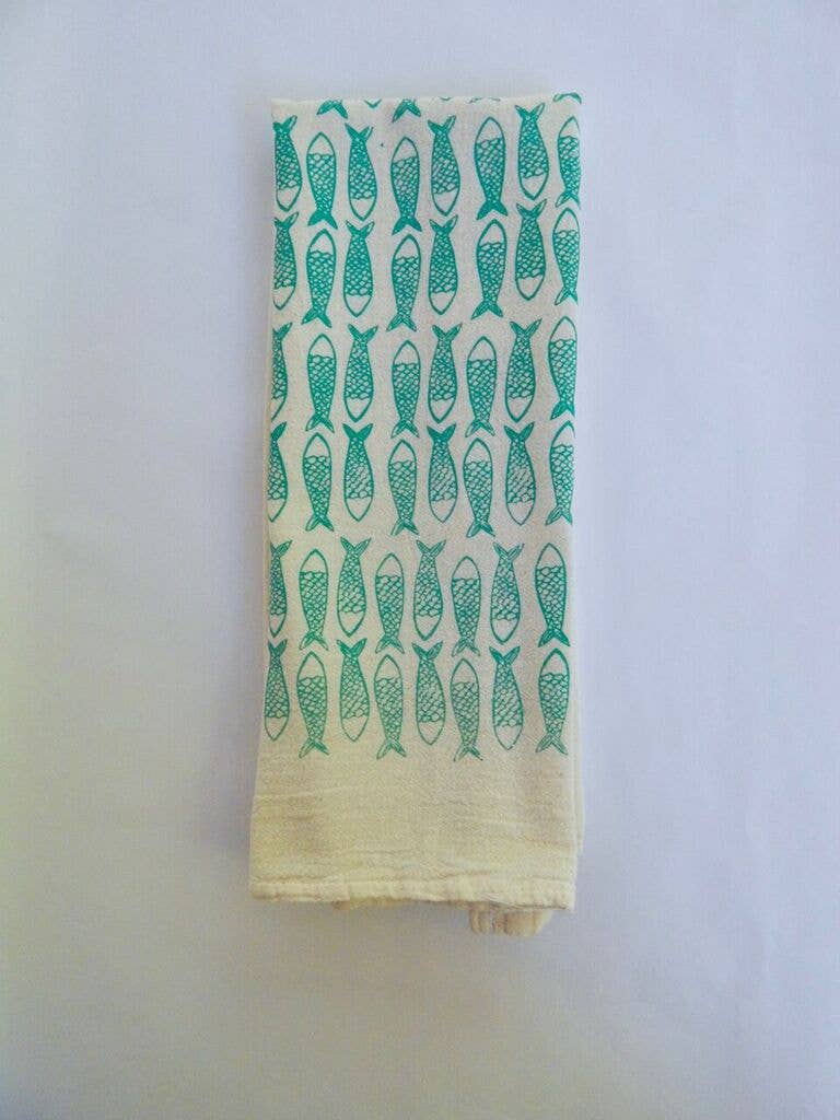 These are super soft and absorbent, long lasting, and a favorite kitchen companion. Handprinted with our fish illustration in our studio in Asheville, North Carolina using water based, environmentally friendly, non toxic, and permanent inks.