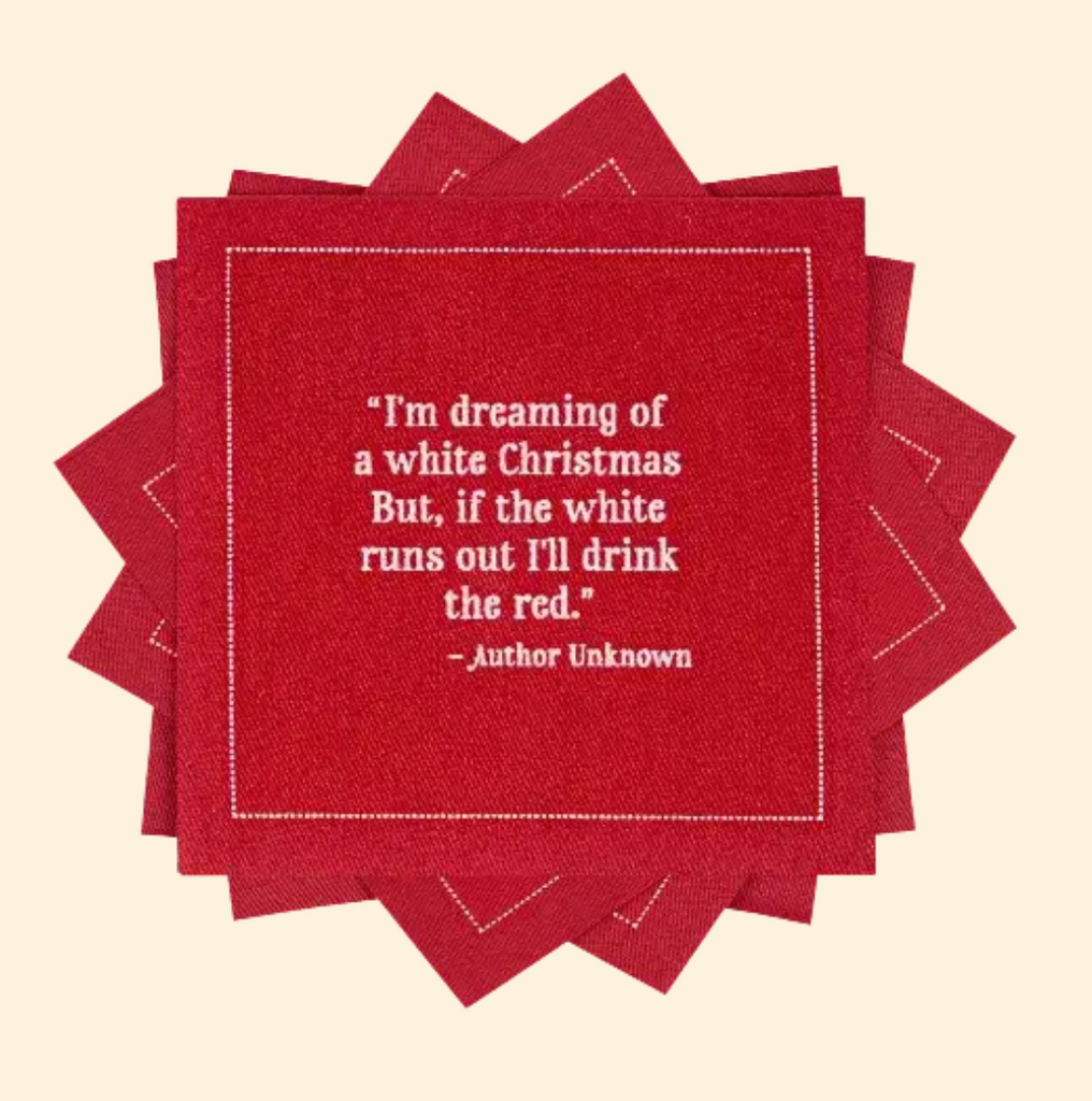 Ideal for holiday parties, office gatherings, cookie swaps, or Christmas dinner, these napkins add sparkle, wit, and warmth to every sip and toast.