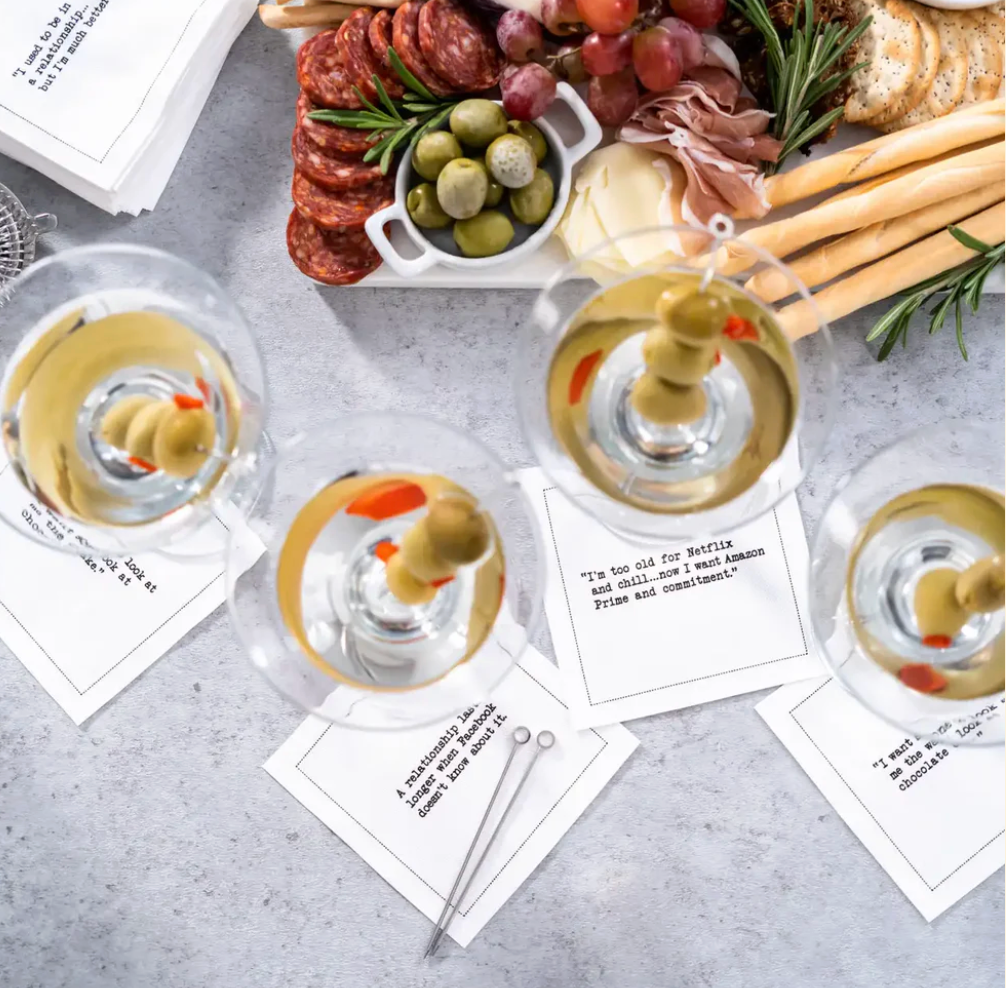Keep the laughs flowing right along with the cocktails! These Five Star Napkins featuring witty “Relationship Quotes” are the perfect icebreaker for parties, girls’ nights, and happy hours that need a little extra humor.