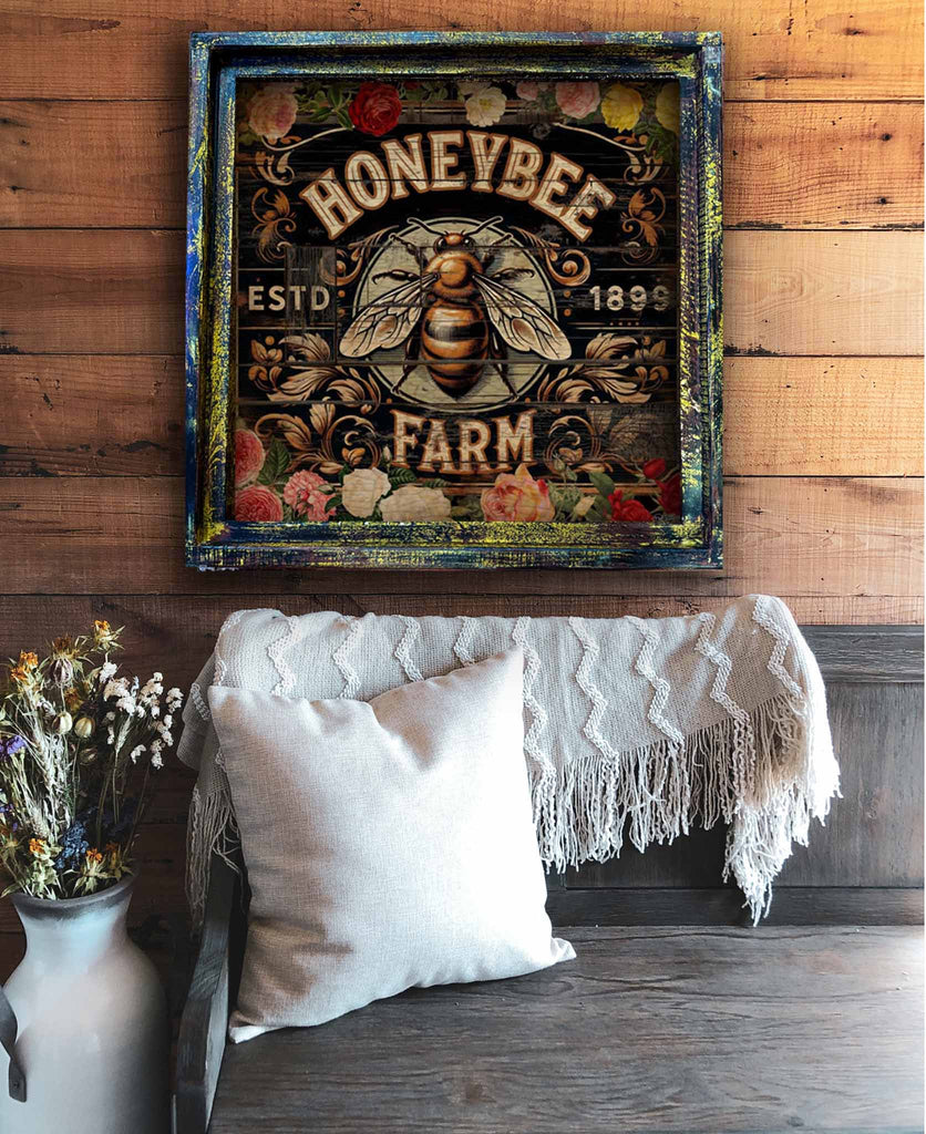 Square-framed original artwork. Original designs by TroubleMaker Trading Company. These are printed and framed by us here in Texas. The rustic frames are made per our specifications in Mexico. Every frame will be a bit different as they are all handmade. 10"