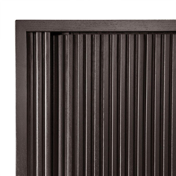 The Roller Max sideboard offers functional storage in an eye-catching modern design. Featuring mahogany sliding doors, adjustable shelving, and seamlessly integrated handles in a solid teak body with understated teak legs. The result is a minimalist and contemporary storage furniture piece for any room in your home. Designed by Alain van Havre.