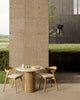 The Roller Max Outdoor Dining Table stands out with its stacked wood-stick design, combining natural elegance with functional durability. Its hand-finished concrete top pairs seamlessly with a reclaimed solid teak base, creating a timeless material mix that suits both indoor and outdoor spaces.