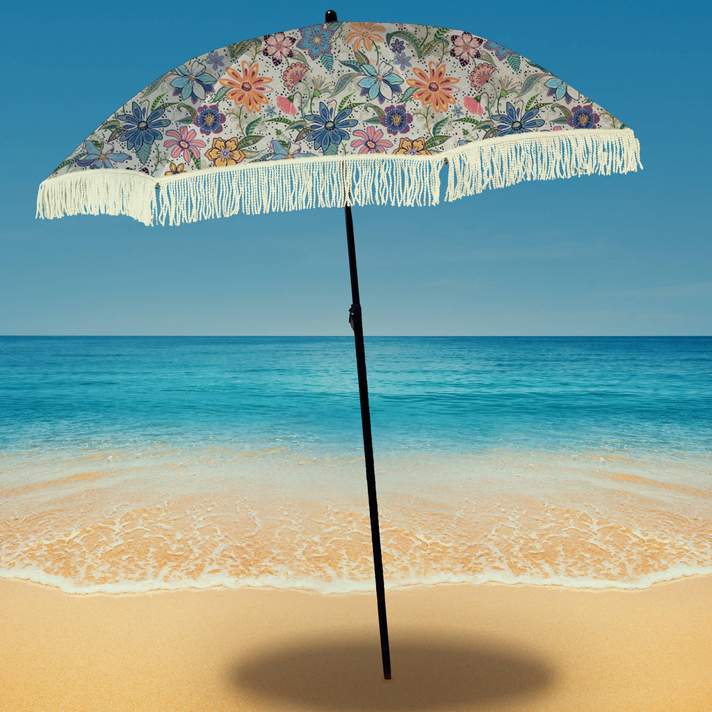 This one-of-a-kind luxury beach umbrella is 100% UV sun protective.