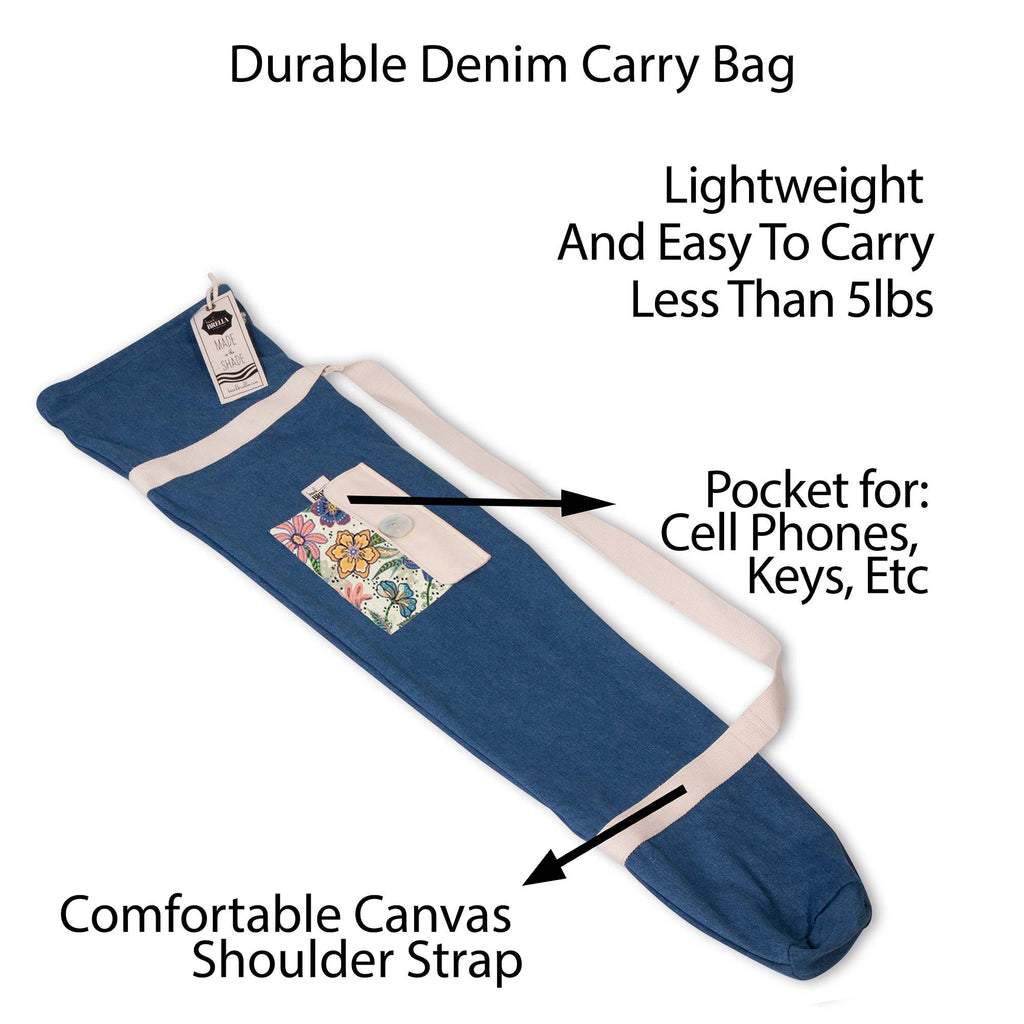 The carrying case is exceptional for beach travel, offering a comfortable shoulder strap, adjustable drawstring, and a convenient cell phone pocket.