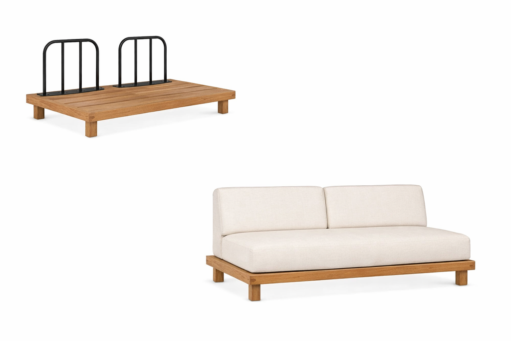 Frames and cushions can be ordered separately or together as a complete product. Clips to seamlessly connect the sofa modules are included. To enhance the natural beauty of the teak, this product comes without any finishing or protective treatment. For more information, please refer to the care and maintenance instructions for the "outdoor collection".