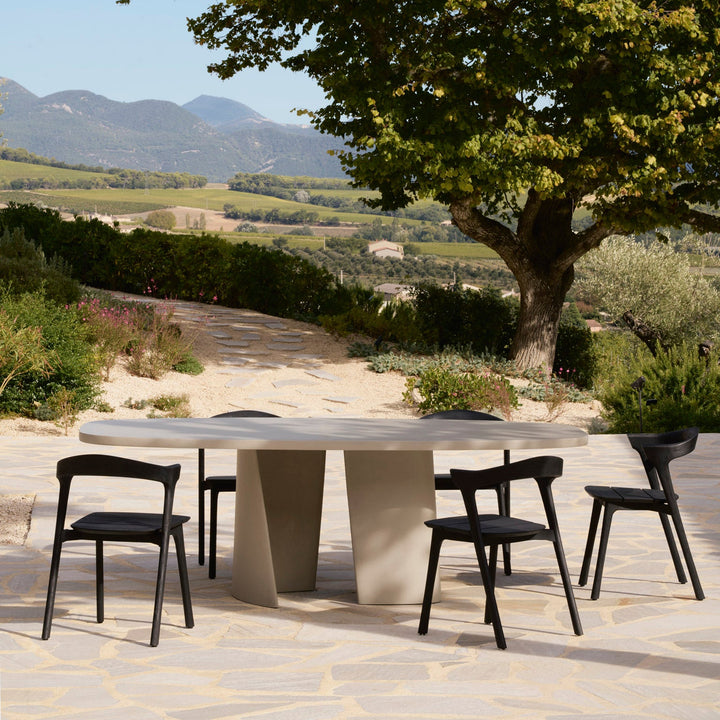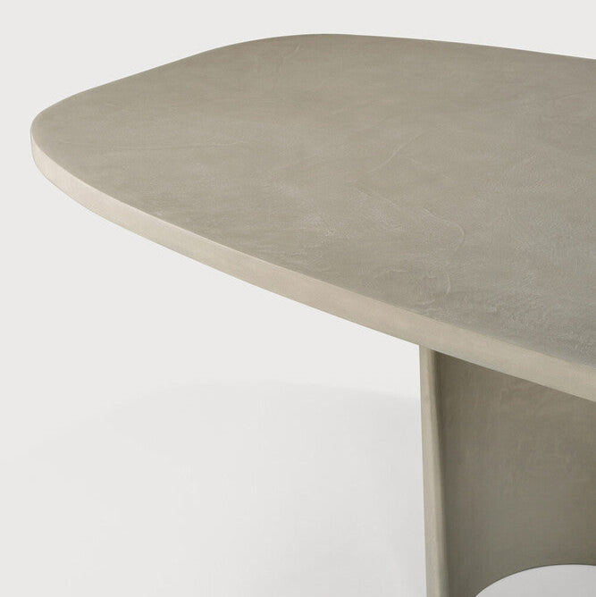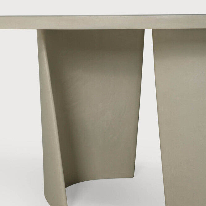 Each leg's torsion conveys mutual dependence, symbolizing balance and poise, while the central open space introduces an element of lightness and airiness, enhancing the table's aesthetic and functional appeal. With its thoughtful design, the Canyon offers ample comfort and space, making it an elegant centerpiece for any dining area.