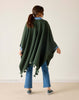 - Curved neckline with large tassels and cable detailing