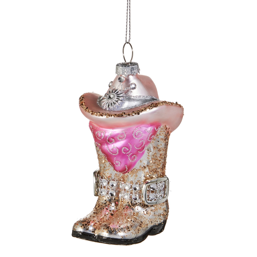 Add a touch of festive charm with the 4" Pink and Silver Boots Ornament. Crafted from delicate glass, this ornament features stylish pink and silver boots that measure 3" long, 2.5" wide, and 4" high. Its elegant design makes it a perfect accent to brighten your holiday décor or a thoughtful gift for someone who loves unique seasonal decorations.