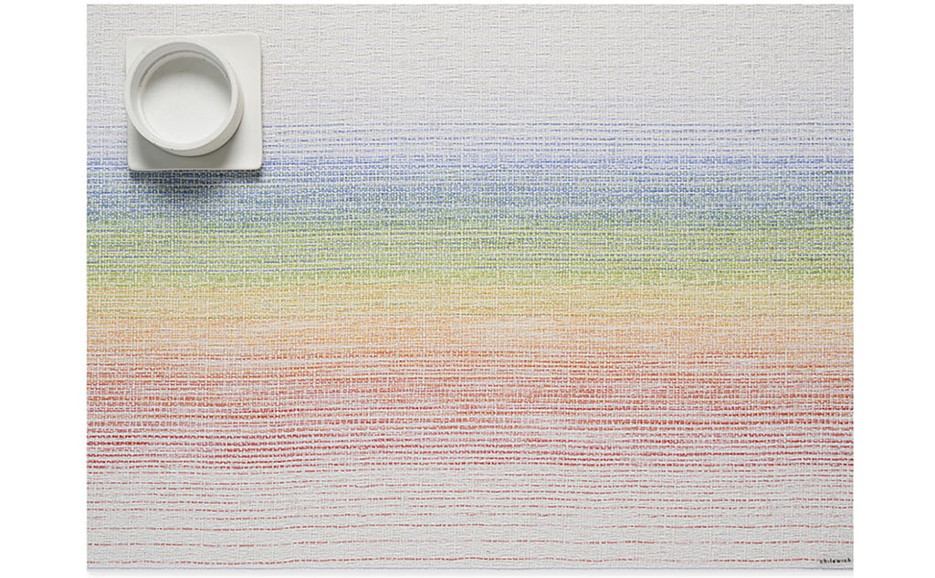 Ombré is a textured weave featuring a unique rotation of Chilewich's signature bi-color yarns to create a subtle ombré effect in the warp. The yarns share one common hue, which helps to create a gradual shift in color.
