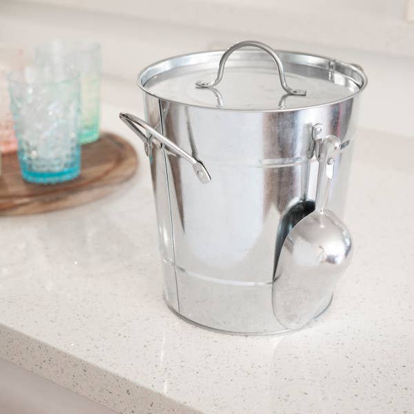 The galvanized bucket and scoop keep ice on hand for parties and barbecues, and the timeless design complements any decor.