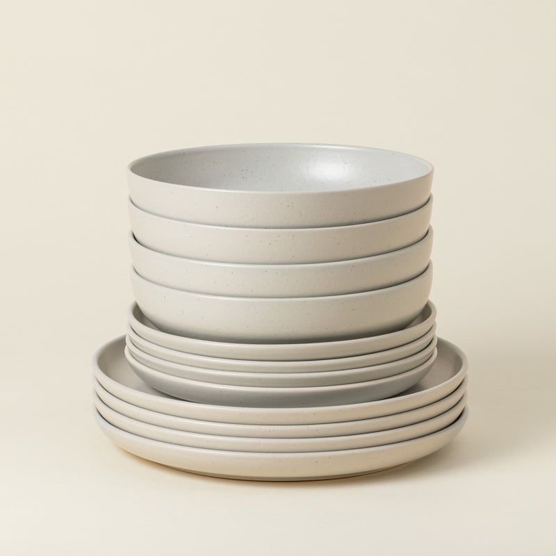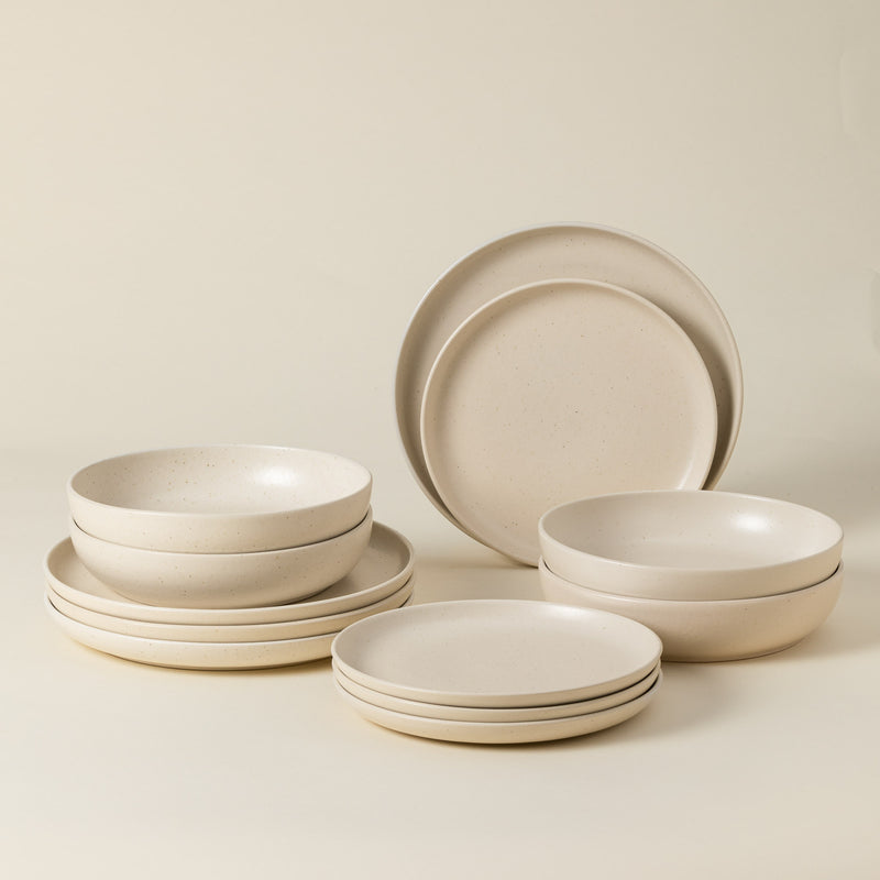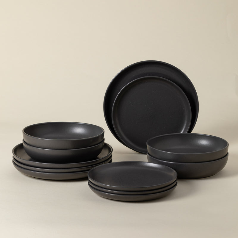The Pacifica 12-piece Dinnerware Set with Pasta Plate is ideal for both everyday use and casual gatherings.