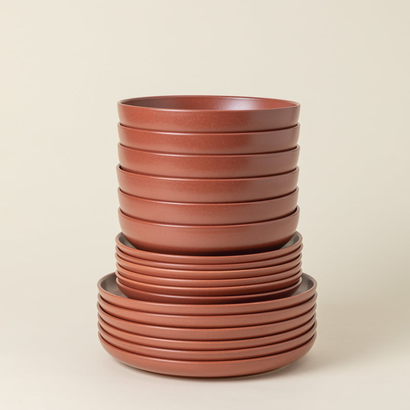 The set includes 6 dinner plates, 6 salad plates, 6 soup/pasta bowls, ideal for serving 6 persons.