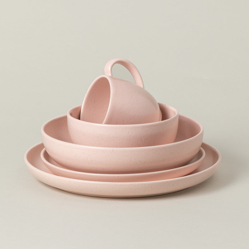 The set includes 1 dinner plate, 1 soup/cereal bowl, 1 salad plate, 1 soup/pasta bowl, 1 mug, ideal for serving 1 person.