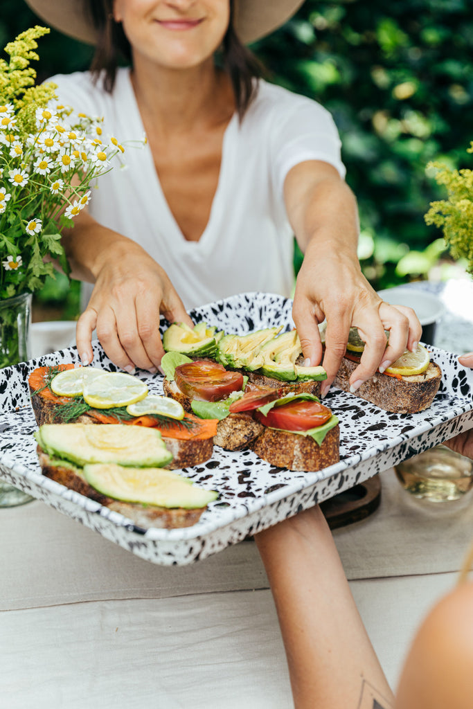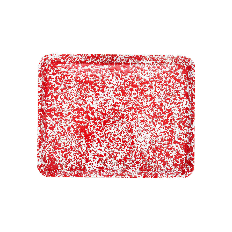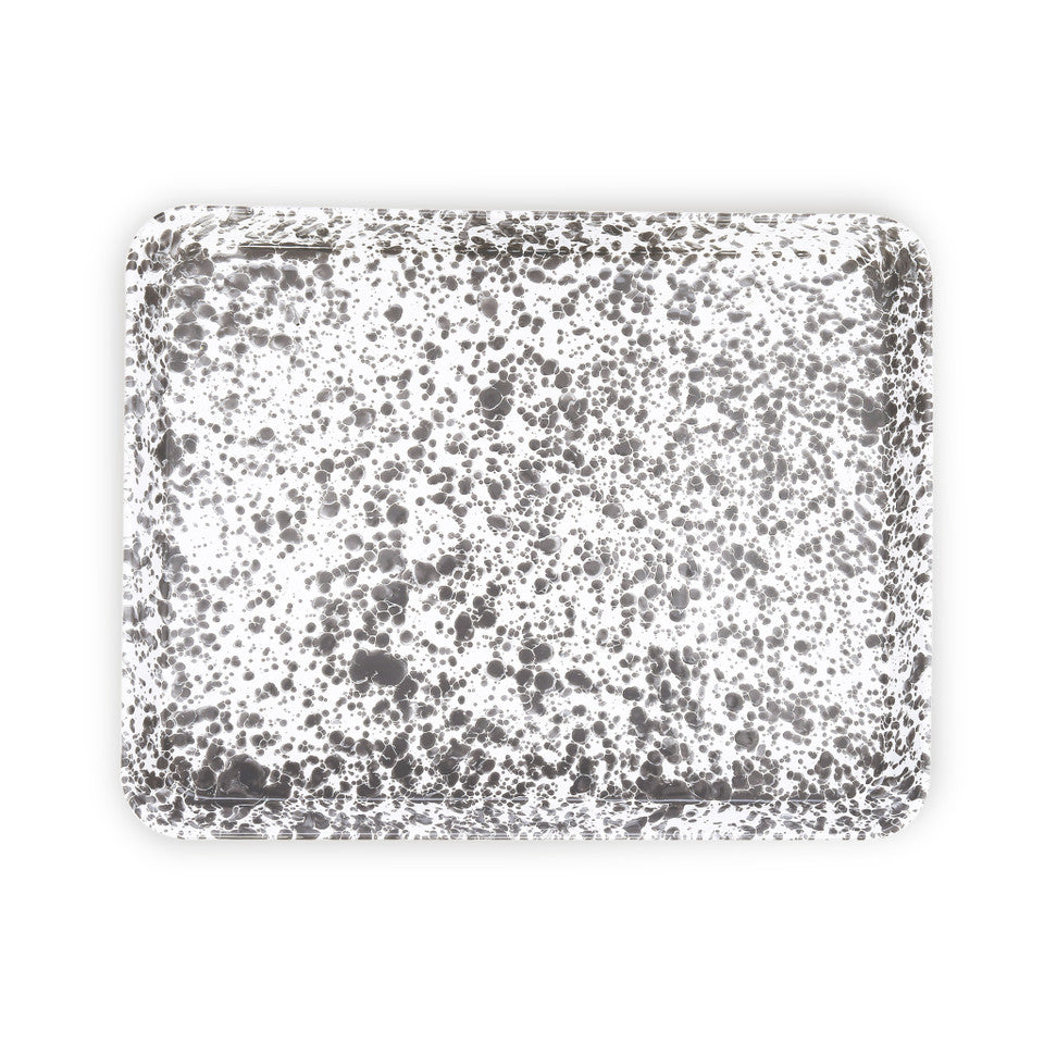 Our enamelware Jelly Roll Tray featuring our iconic Splatter design is a favorite. Its easy clean-up makes it perfect for sheet-pan meals, baking, roasting, and anything else you can throw at it. Build a charcuterie board or serve up cocktails—this tray is a must-have.