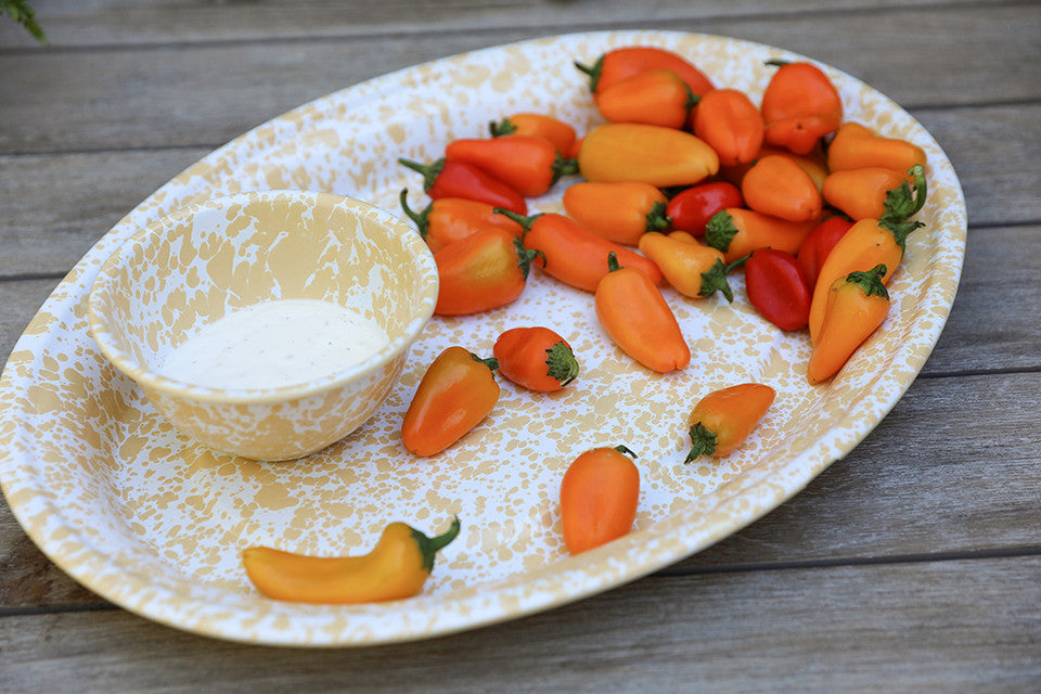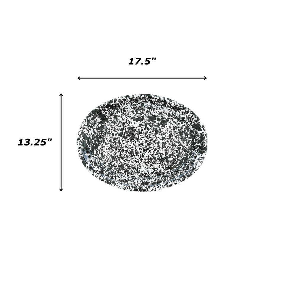Adding our enamel Oval Platter to your serveware collection means having a lightweight, easy-to-clean, versatile platter in your arsenal. It is functionally designed with a rimmed edge to help keep whatever you're serving contained.