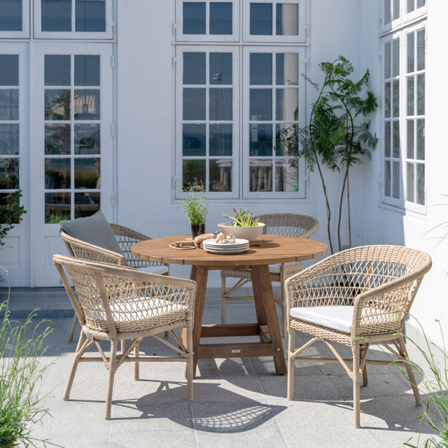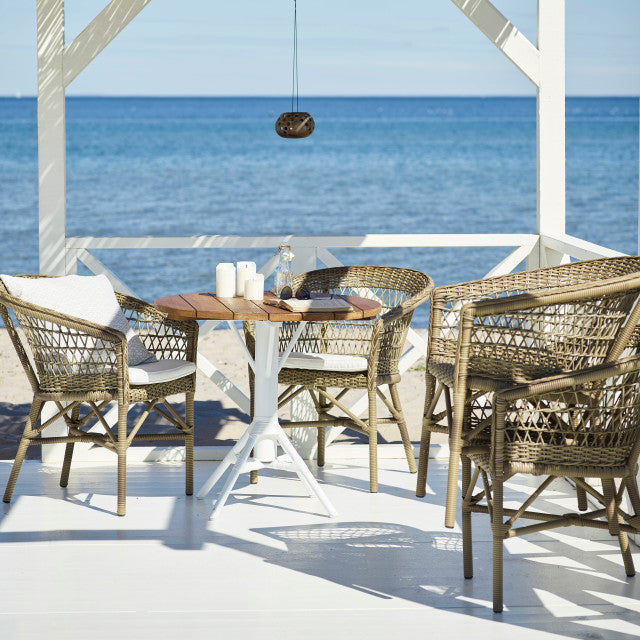 The Emma Outdoor Dining Chair by Sika Design is an all-weather piece created to be both elegant and durable. With its eye-pleasing open-weave design and easy barrel silhouette, it makes a comfortable choice for dining alfresco on a patio or terrace. Crafted with ultra-durable polyethylene ArtFibre™ wicker wrapped around a weatherproof AluRattan™ frame, this outdoor dining chair is built to withstand regular outdoor use. With its stackability, maintenance-free design, and enduring style, the Emma Dining Chair is a practical choice for home, commercial, and hospitality settings.