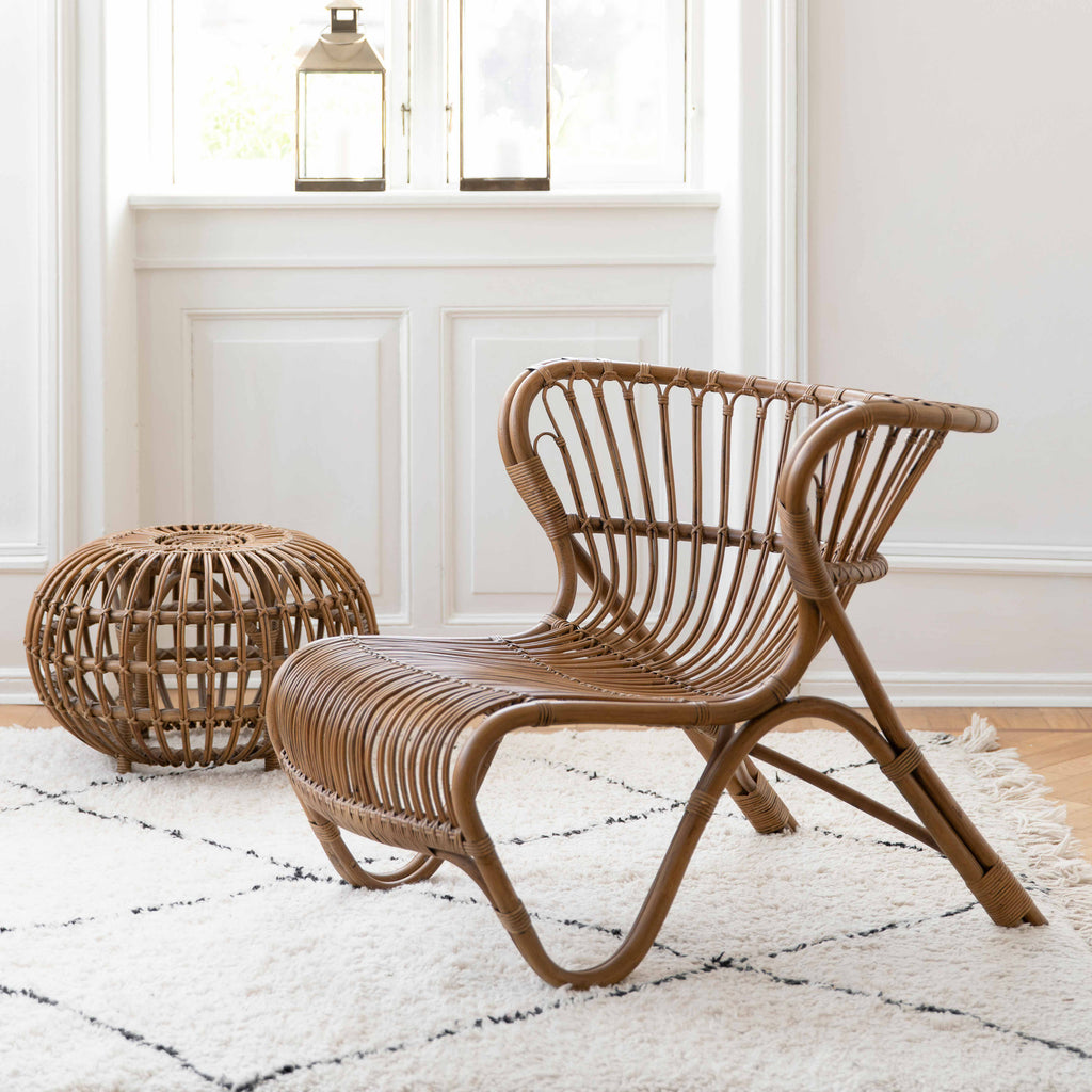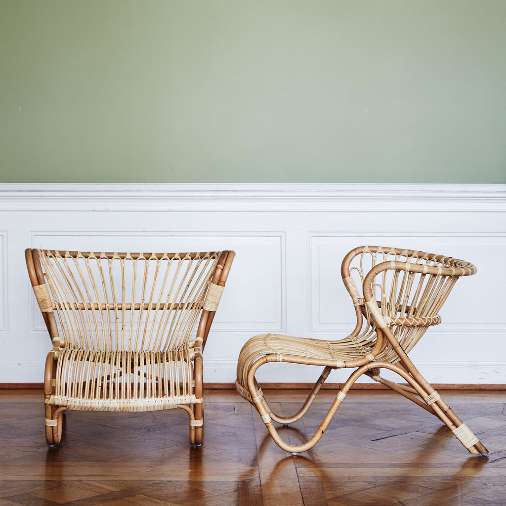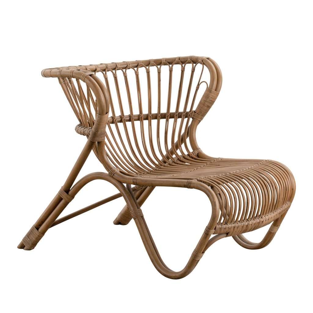 The Fox lounge chair is the first of many furniture pieces from the organic furniture design pioneer Viggo Boesen. His inspiring and imaginative designs granted him a legacy as a part of the "Danish Golden Age." in 1936 the Fox lounge chair won at the Danish wicker-maker guild competition. Sika-Design is proud to be the first to bring the Viggo Boesen design back into the market. The Fox chair is available in Polished Natural with skin-on and Polished Black. Cushions not available.