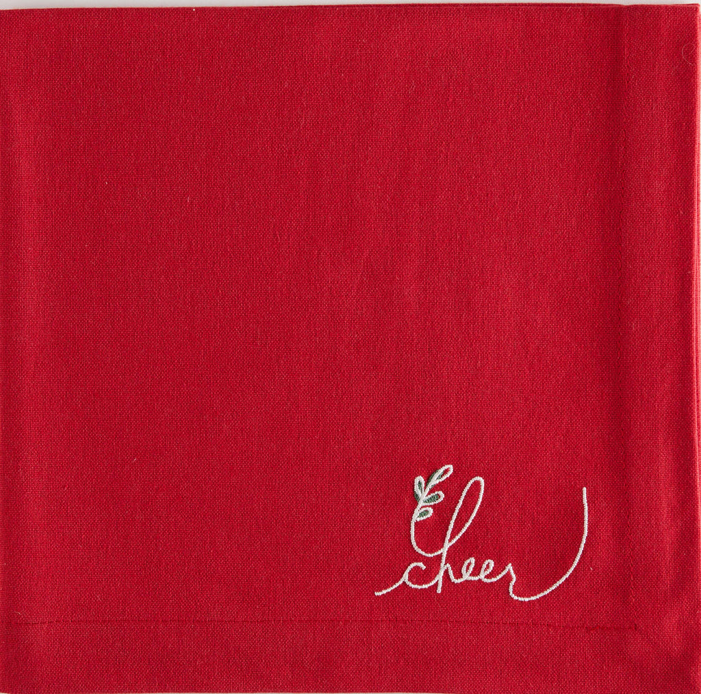 Red Sentiment Cheer Napkin-Embroidered - Set of 4