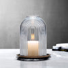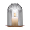 Perfect for indoor and outdoor displays, this medium NUDE Ilo candle holder comprises a clear crystalline dome, enriched with a hand-engraved ripple pattern, resting atop a light-reflective copper base. It can be used alone or combined with other pieces from the range for a captivating effect.