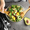 Beautifully crafted from olive wood, each set of wooden salad servers features its own unique wood pattern.
