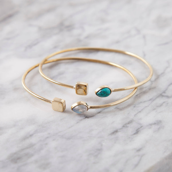 Stacked Tear Drop Ear Climber with Faceted Moonstone