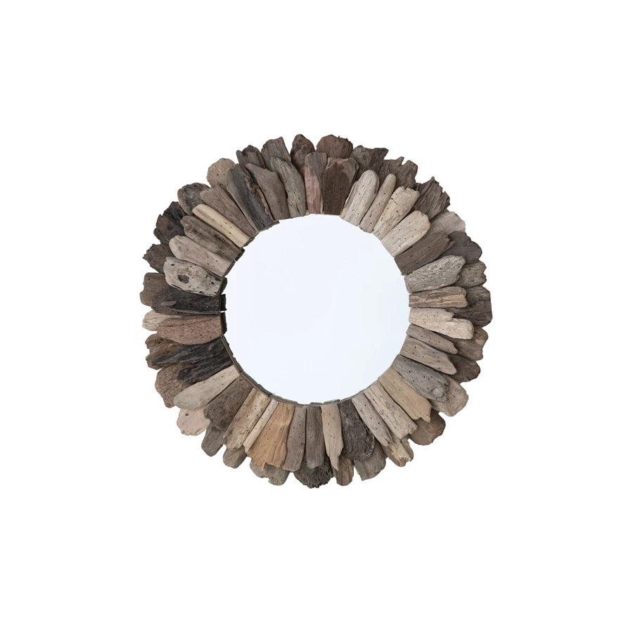 This beautiful round mirror showcases a distinctive layered driftwood frame, bringing a touch of natural elegance to your decor. Its versatile design suits coastal, rustic, boho, and farmhouse styles with ease. You can hang it horizontally, vertically, or both, allowing for adaptable placement. Crafted from driftwood and plywood, it combines durability with a lightweight feel.