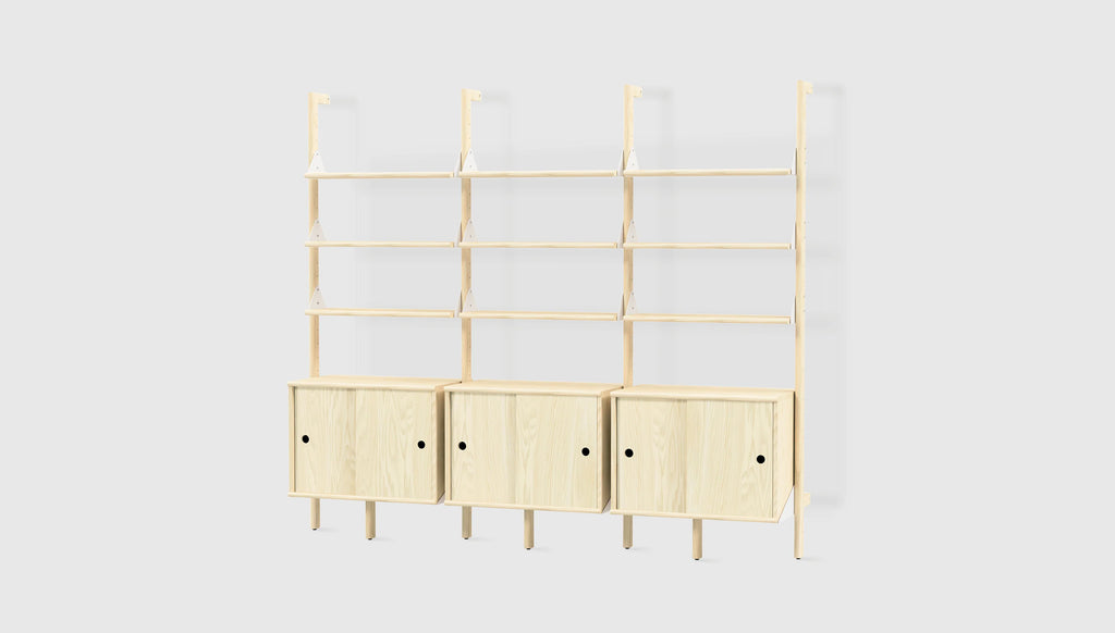 The award-winning Branch Modular Organization System effortlessly blends mid-century style with versatility for a modular piece that gives you an infinite number of elegant storage options for home, office or retail environments. The design features varying configurations that can be transformed into a wide range of organization or display units including bookshelves, desks, and wardrobes. Add-ons like closed-door cabinets allow you to further customize the size, layout, and function of the system to perfectly suit your space. Thoughtfully refined details, such as rounded edges on the shelves and frosted door fronts, soften Branch's aesthetic and enhance its architectural style. Straightforward installation means you can spend more time perfecting your vision and display and less time stressing over instructions.