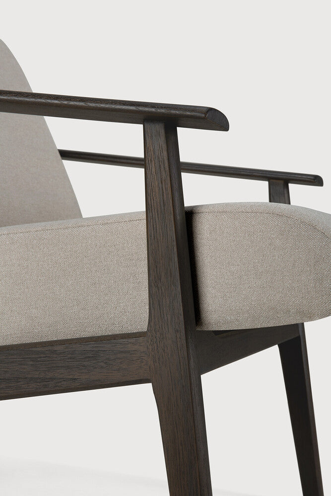 Made from dark brown tainted teak with a varnish finish and high-density foam with Warm Ash coloured Eco-upholstery.