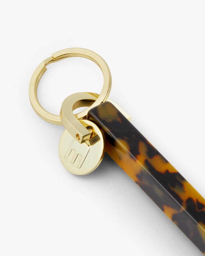 A classic bar keychain, handmade from fine Italian acetate with gold hardware. - Handmade from Italian acetate - Gold plated hardware - Bar length: 5" inches - Bar width: .375" inches - Ring diameter: 1" inch