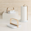 Elevate your table setting with the Bellwood Napkin Holder, thoughtfully crafted from a recycled plastic weighted base and warm wood accents. This stylish combination adds a welcoming touch to any dining occasion, while the holder’s unique design keeps napkins neatly in place. An integrated rubber gripper ensures stability, making it easy for guests to take one napkin at a time without disrupting the stack. Its integrated wooden handle makes it easy to move from your countertops, dining tables or patios for easy access while working or entertaining. Perfect for adding both function and charm to your dining experience. Pair with the coordinating pantry items from our Bellwood Collection.