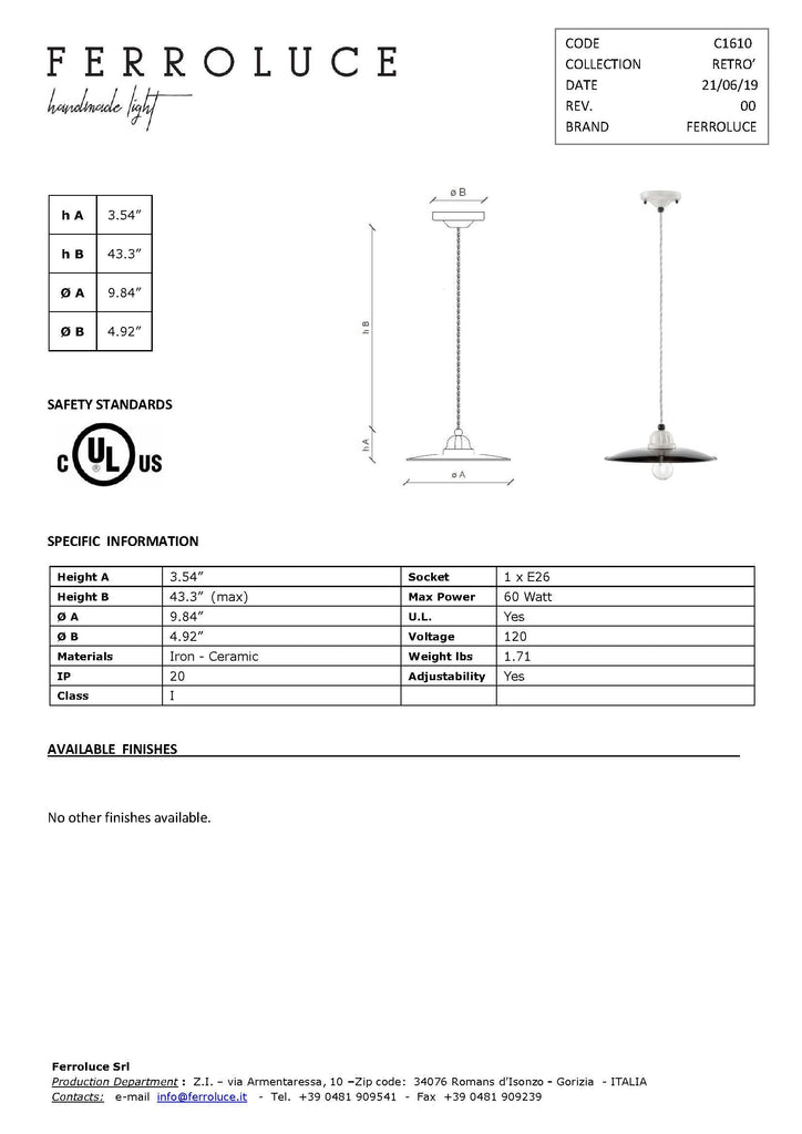 Lamping: Medium base socket for 77 watt maximum bulb.
