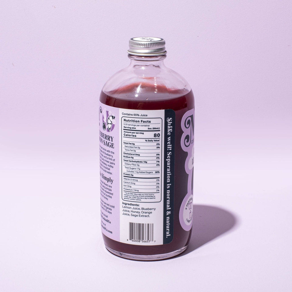 This premium cocktail mixer or elixir is handcrafted with fresh-squeezed lemon juice, ripe blueberries, honey, orange juice, and sage extract. No artificial additives – just all-natural, clean ingredients. Each 16-oz bottle crafts up to 10 cocktails. Cocktail Pairings: Vodka, Whiskey, Mezcal, Gin