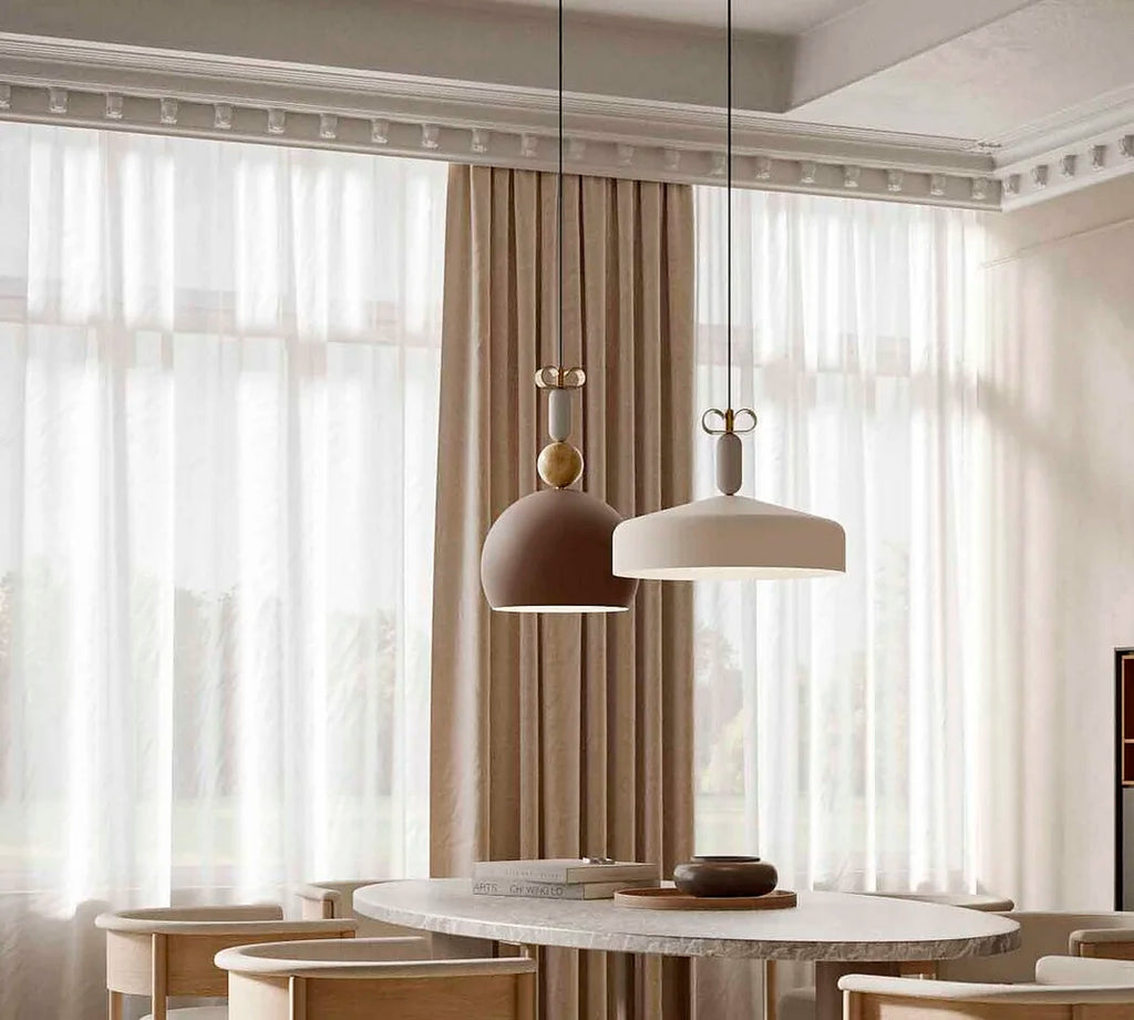 Bon Ton is an iconic collection of lamps inspired by the world of jewellery and elegant femininity. The product's iconic feature is the curl of the closure, reminiscent of an earring. Pendant lamps are available in many versions; they differ in the shape of the diffuser, which is more or less spherical, and in Mediterranean colours.