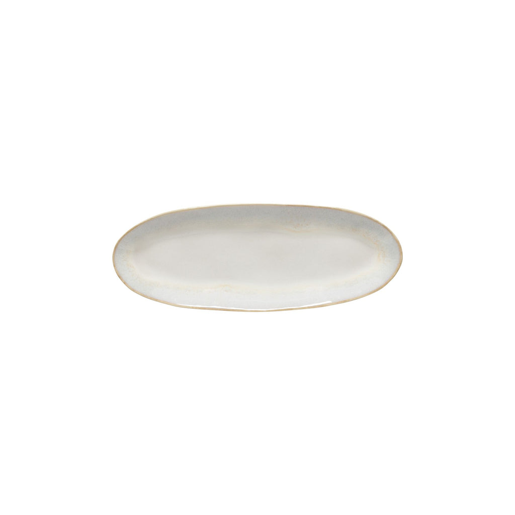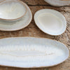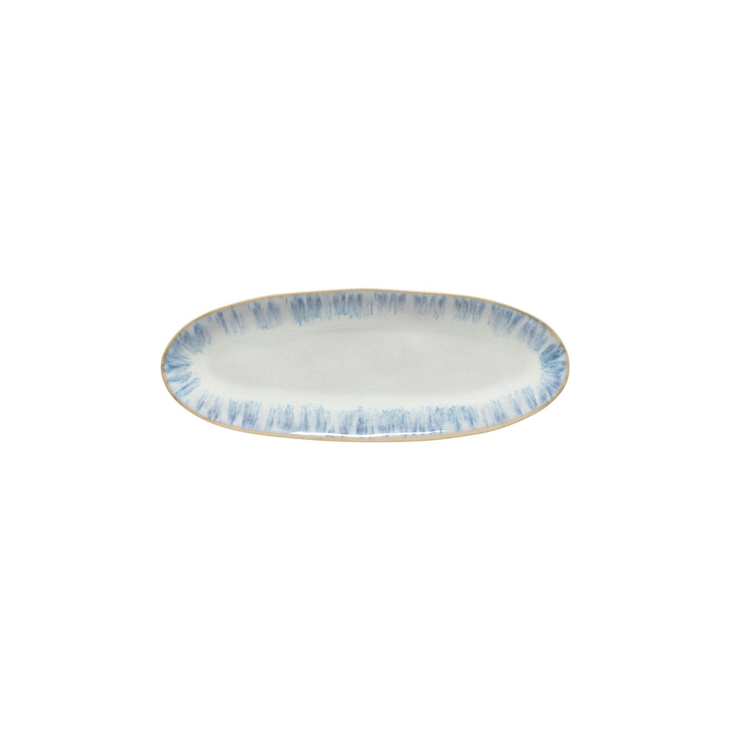 The Oval Plate / Platter, handcrafted in Portugal from fine stoneware, features organic shapes inspired by the Algarve Coast. Its reactive glaze in white and blue creates a unique finish, making it perfect for special occasions or daily use.