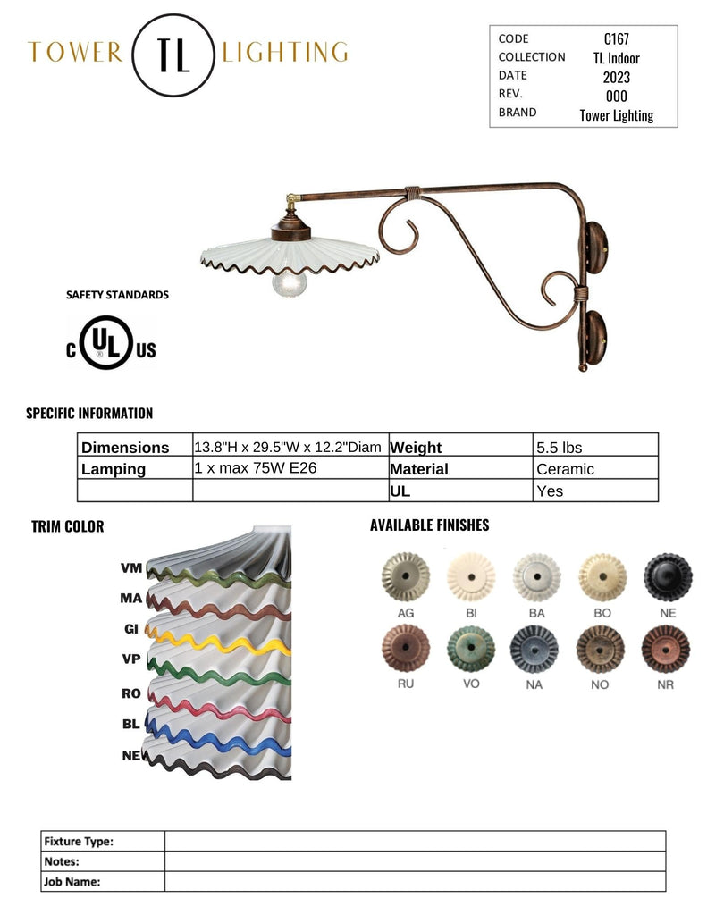 Large (C167): 13.8"H x 29.5"W x 12.2" Diameter (without bulb)