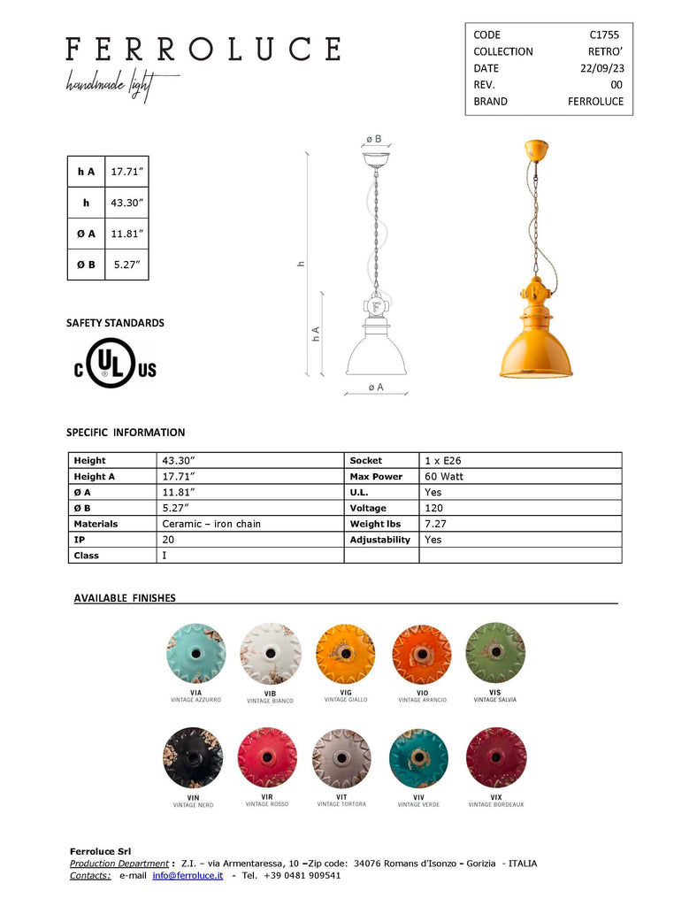 Made in Italy by Ferroluce. UL listed.