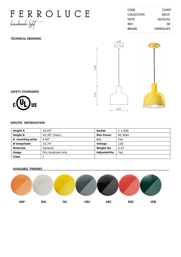 Made in Italy by Ferroluce. UL listed.