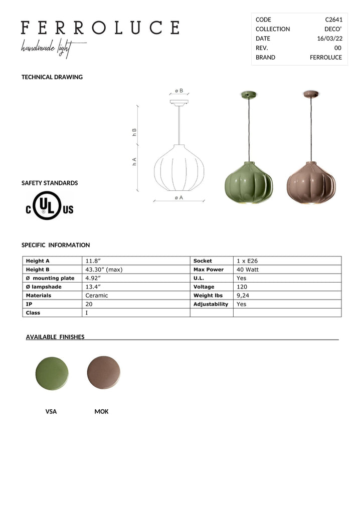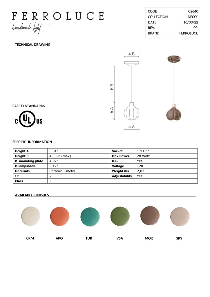 C2640-C2641 Decò Afoxe Pendant (6 colors available)