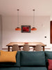 This lamp is composed of two parts: the bowl-shaped upper part is made of ceramic and the lower part is made of painted and natural glass. Its round shape recalls the structure of stadiums and arenas. Its name refers to the Brazilian stadium par excellence: Maracanà.