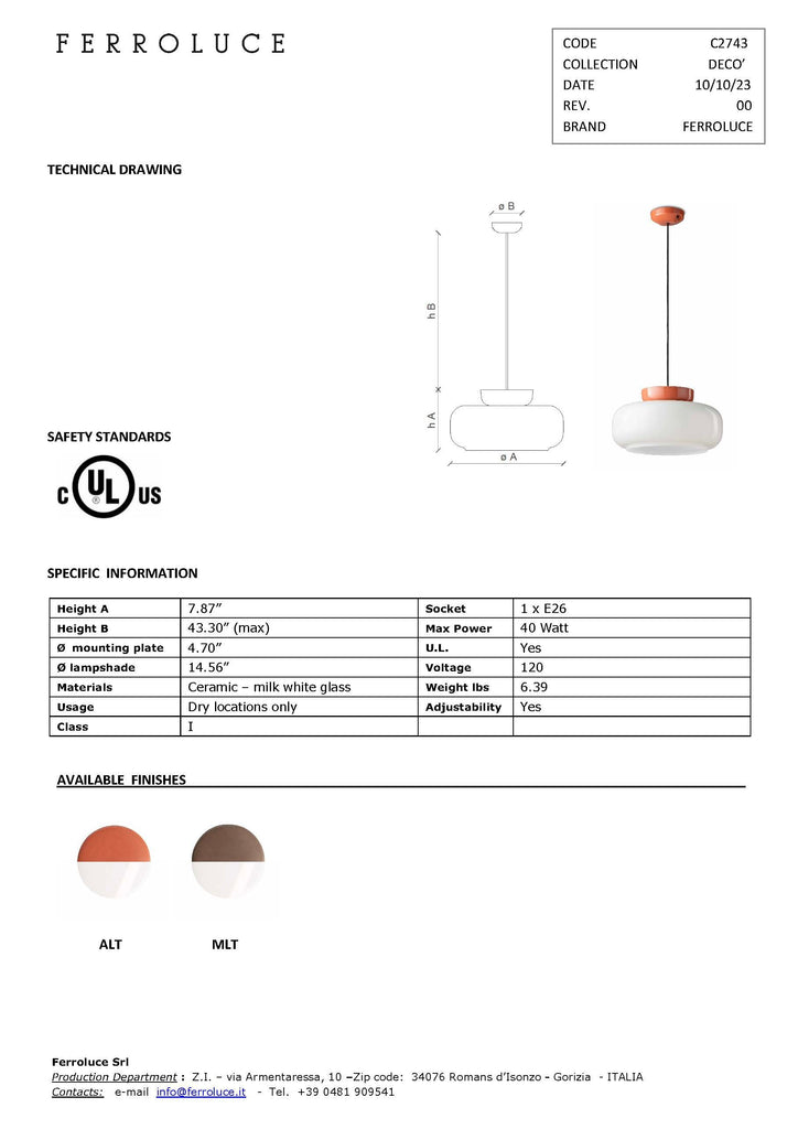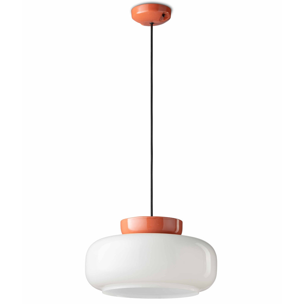This lamp is composed of two parts: the bowl-shaped upper part is made of ceramic and the lower part is made of painted and natural glass. Its round shape recalls the structure of stadiums and arenas. Its name refers to the Brazilian stadium par excellence: Maracanà.