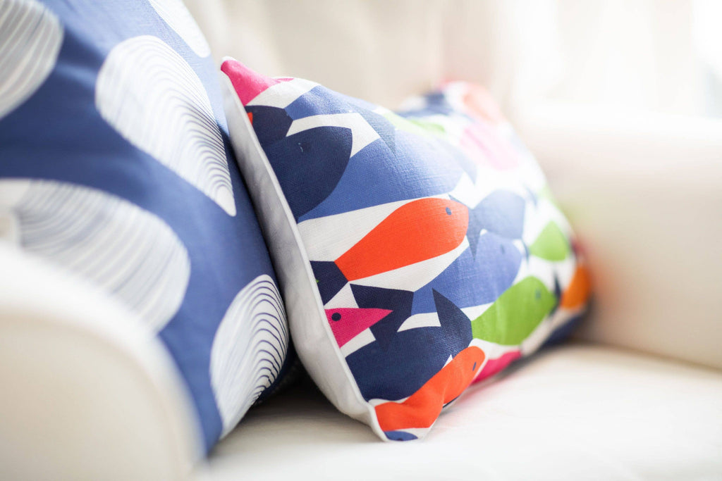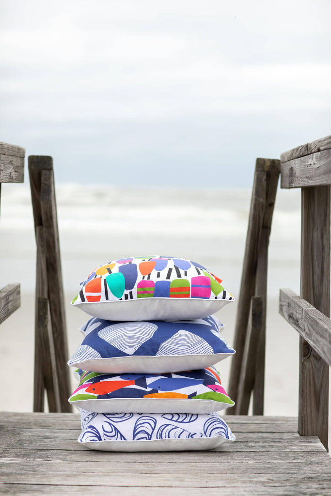 ★100% Recycled Polyester lumbar accent pillow ★Includes polyester insert, zipper closure ★20X20" throw pillow ★Designed by Kate Nelligan