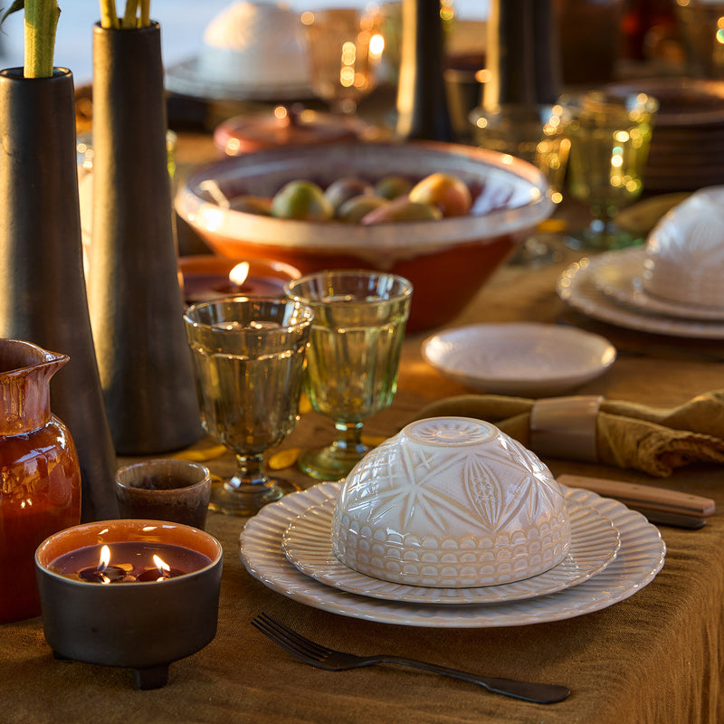 As its name suggests, the Cristal collection is inspired by the rich patterns found in the most sublime crystal craftsmanship. This tactile and sophisticated collection stands out from the ordinary and makes an impressive appearance on the table. With its beautiful reactive finish, Cristal is inspired by the sophisticated yet natural colors of beach shells.
