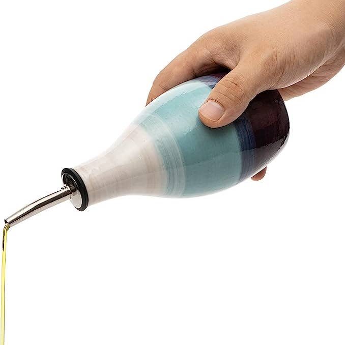 This ceramic dispenser is perfect for oil and vinegar lovers! This drizzling vinegar and oil cruet is a unique piece of pottery, handmade by Gute.
