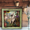 Square-framed original artwork. Original designs by TroubleMaker Trading Company. These are printed and framed by us here in Texas. The rustic frames are made per our specifications in Mexico. Every frame will be a bit different as they are all handmade. 10"