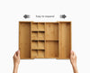 This game-changing drawer organizer is cleverly designed with five overlapping compartments for storing cutlery, two deep-sided compartments for holding small gadgets, and expanding sides for larger utensils. It is made from beautiful, natural bamboo and is suitable for drawers with a minimum height of 8 cm (3.25 inches).