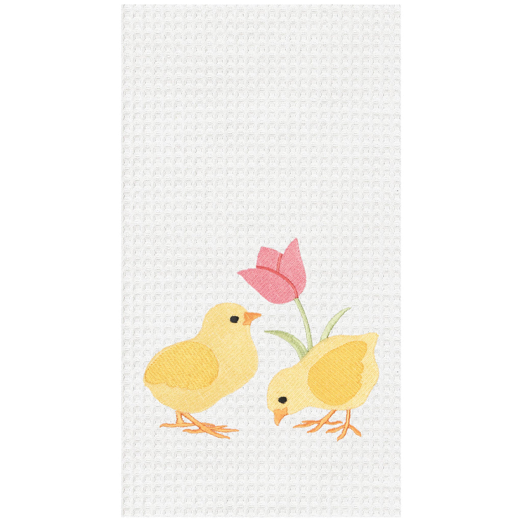 Add a cheerful touch to your kitchen this spring with this waffle weave towel, featuring two adorable embroidered yellow chicks nestled alongside a timeless pink tulip. Crafted from soft, absorbent cotton, this towel combines style and function, making it an ideal accessory for spring decorating and seasonal cleaning, or a thoughtful gift for Easter or Mother's Day. With its charming design and high-quality fabric, this towel brings a touch of springtime elegance to any home, making it a must-have kitchen accessory for the season.