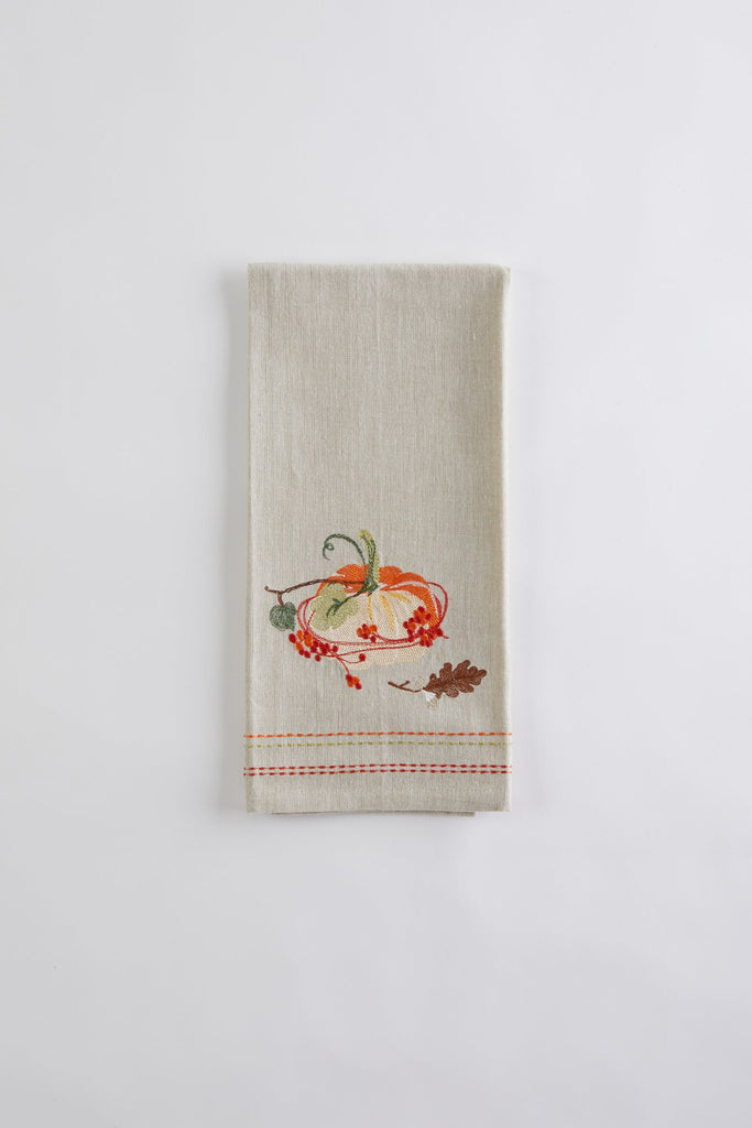 Accentuate your kitchen with this seasonal, cotton dish towel! It features an embroidered sprig of autumnal flowers with a checked border. Coordinate with other items in our Autumn Harvest collection to create a cozy, welcoming atmosphere!