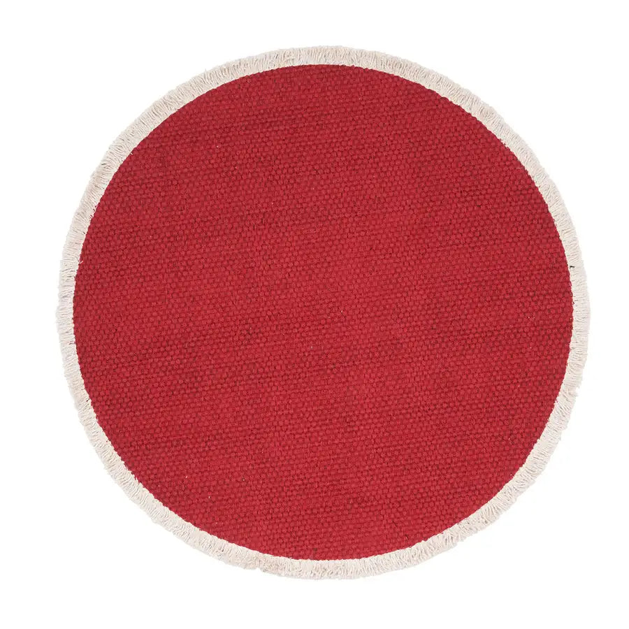 This versatile placemat is crafted from solid woven cotton, perfect for layering to enhance any table setting. Finished with a delicate fringe around the edges, it adds a subtle touch of elegance to every dining experience.